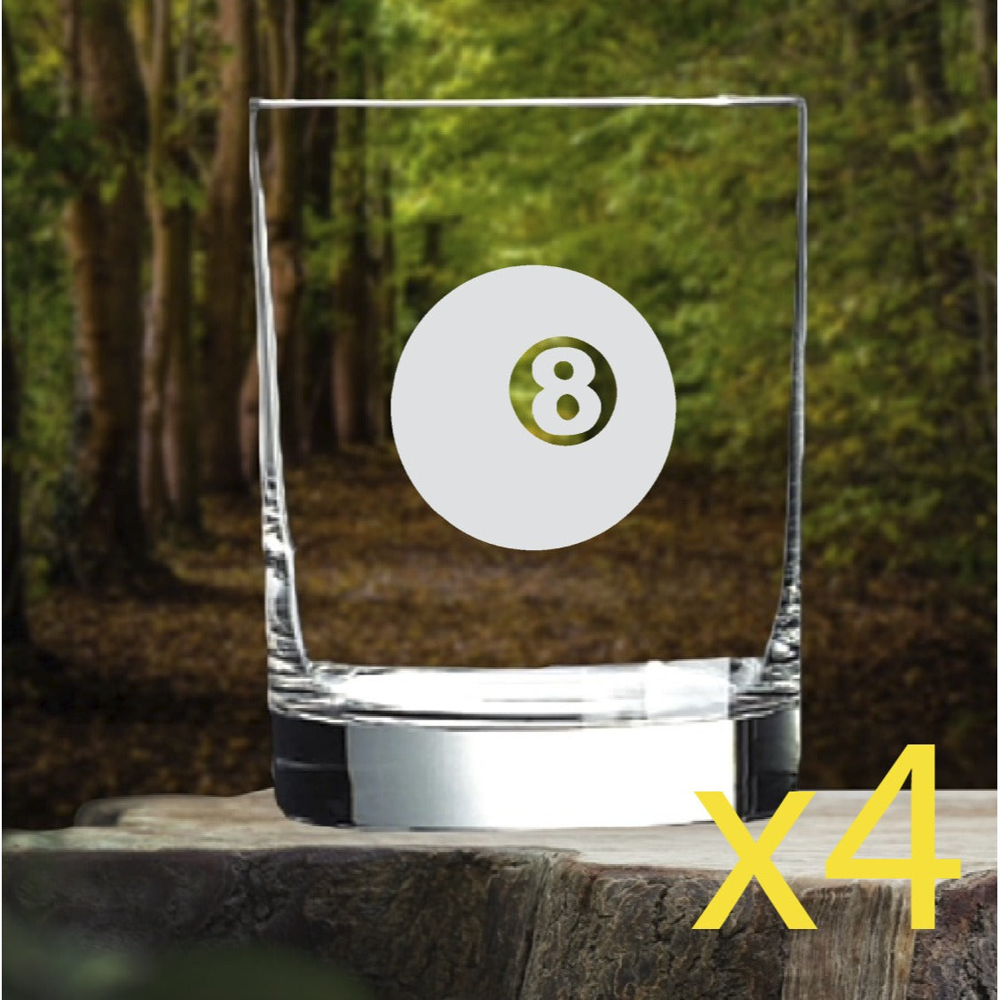 8 Ball Whiskey Glasses x4 Double 14 Oz Premium Old Fashioned Billiards Pool NEW