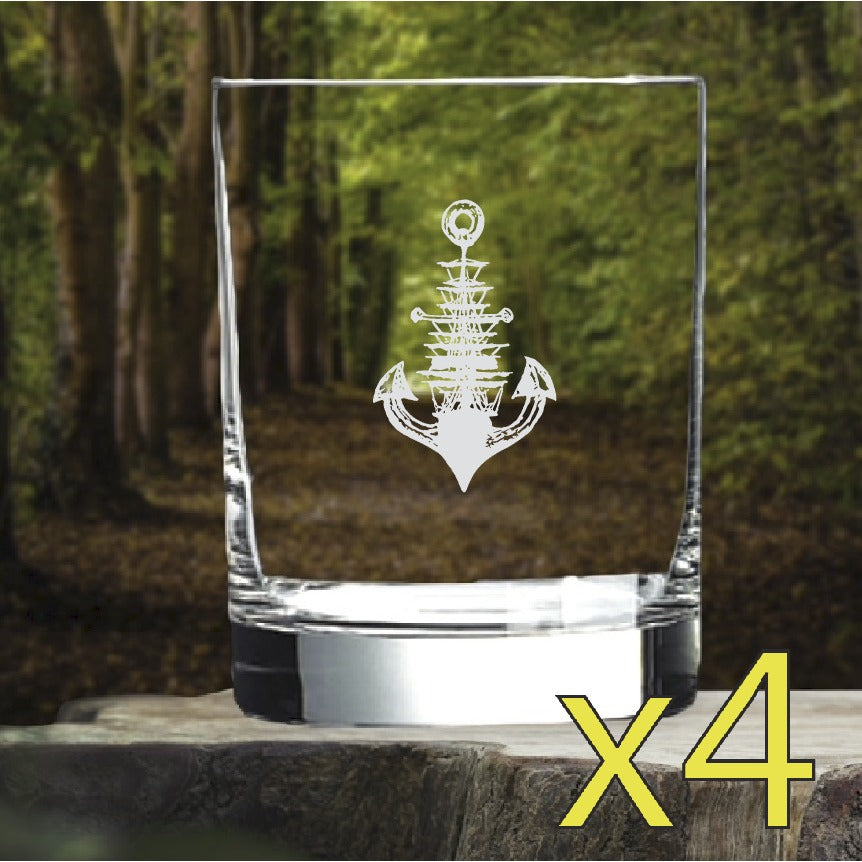 Anchor Ship Whiskey Glasses x4 Double 14 Oz Premium Old Fashioned Nautical NEW