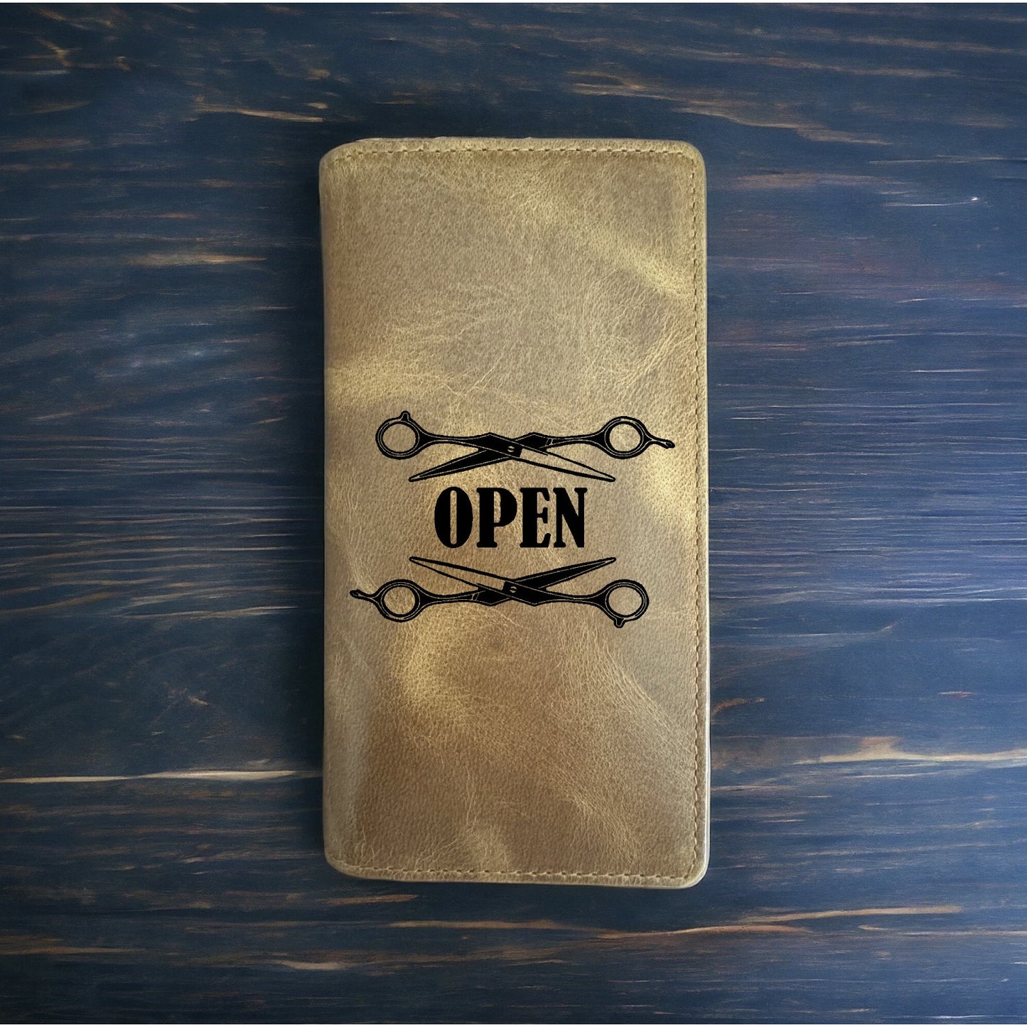 Barber Open Rodeo Wallet Cowboy Western Buffalo Leather Premium Retro Hair NEW