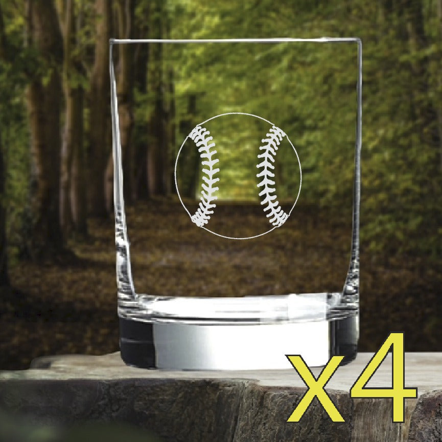 Baseball Whiskey Glasses x4 Double 14 Oz Premium Old Fashioned Sports NEW