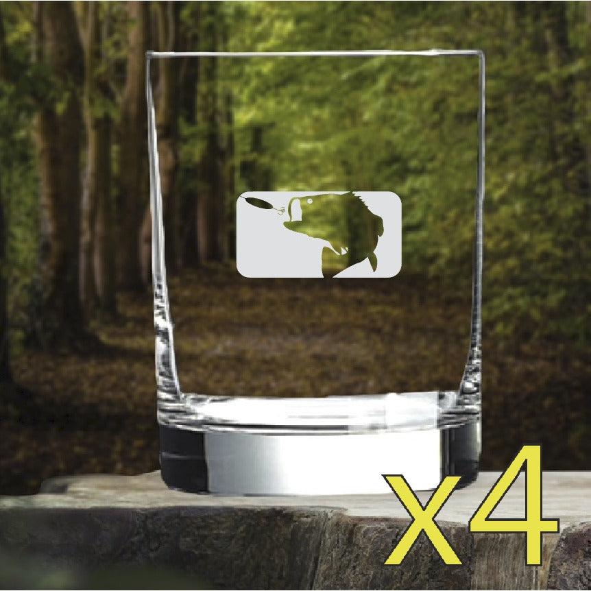 Bass Fishing Whiskey Glasses x4 Double 14 Oz Premium Old Fashioned Outdoor NEW
