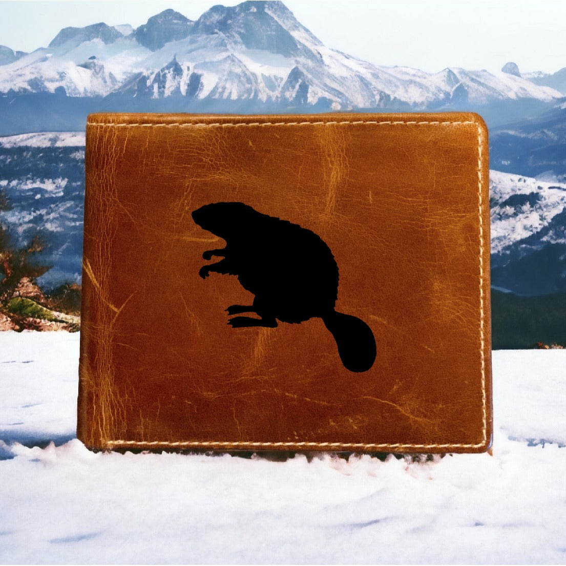 Beaver Shape Leather Wallet Bifold Premium Quality Buffalo Animal NEW