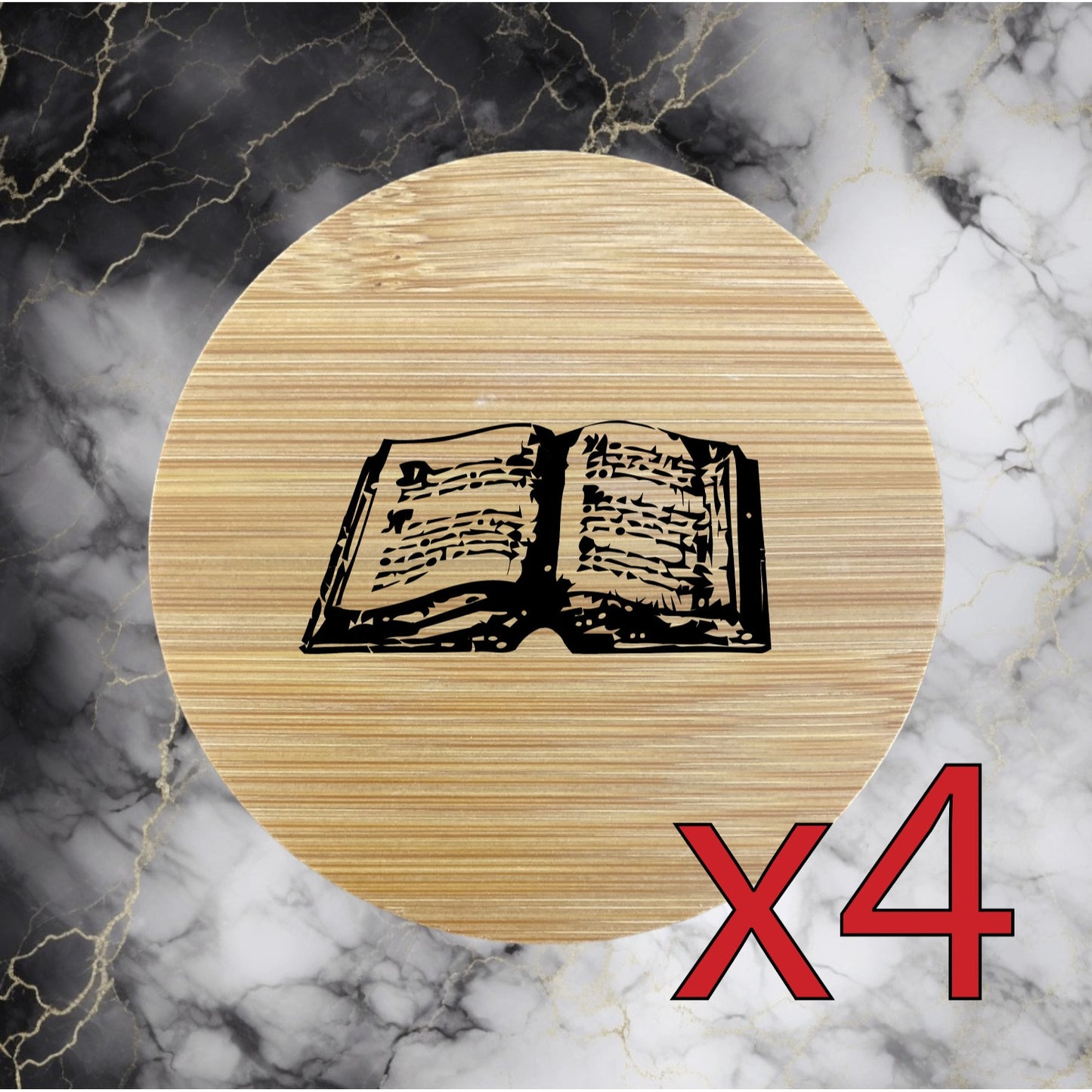 Book x4 Bamboo Coasters Drink Natural Wood Home Decor Lounge Reading Reader NEW