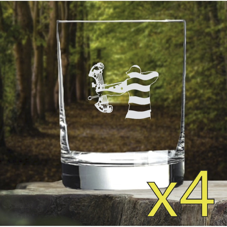 Bow Hunter USA Whiskey Glasses x4 Double 14 Oz Premium Old Fashioned Flag NEW