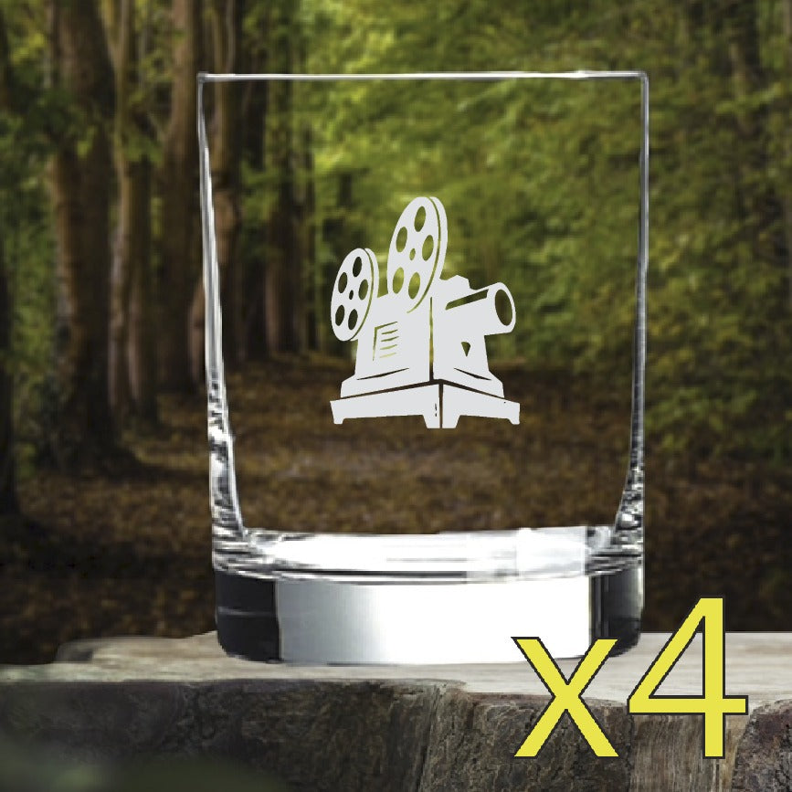 Cinema Retro Whiskey Glasses x4 Double 14 Oz Premium Old Fashioned Movies NEW