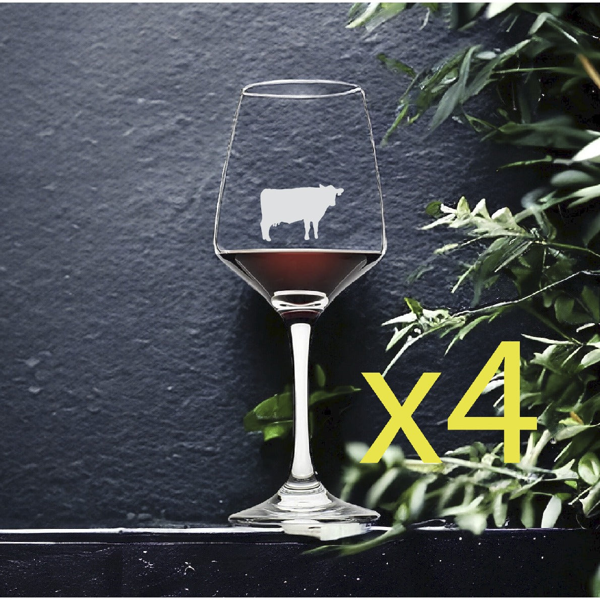 Cow Wine Glasses x4 Premium 12 Oz Personalize Farm Animal Gift NEW