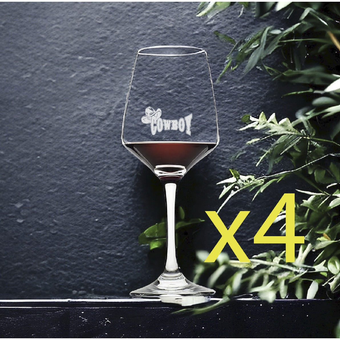 Cowboy Wine Glasses x4 Premium 12 Oz Personalize Country Western Hat NEW