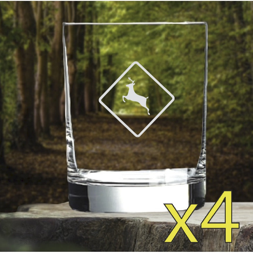 Deer Sign Whiskey Glasses x4 Double 14 Oz Premium Old Fashioned Nature NEW