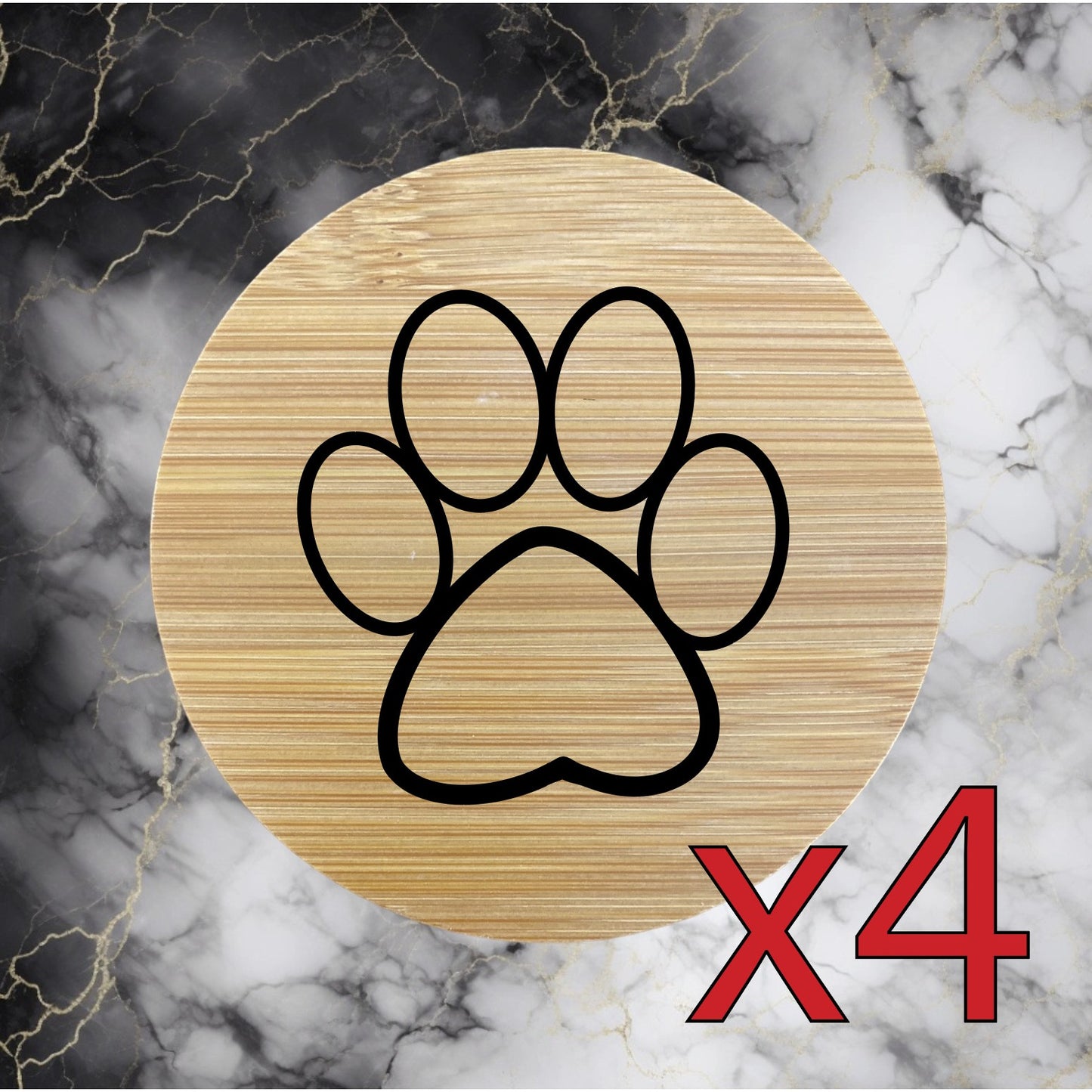 Dog Paw x4 Bamboo Coasters Drink Natural Wood Home Decor Lounge Pet Animal NEW
