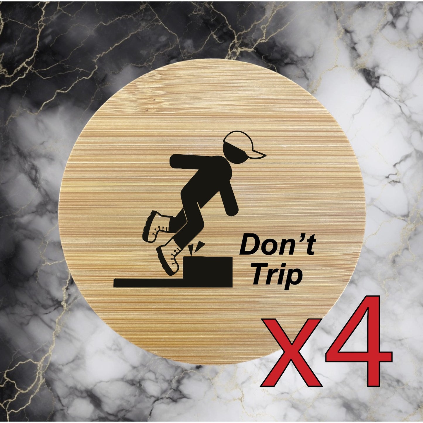 Don't Trip x4 Bamboo Coasters Drink Natural Wood Home Decor Lounge Work NEW