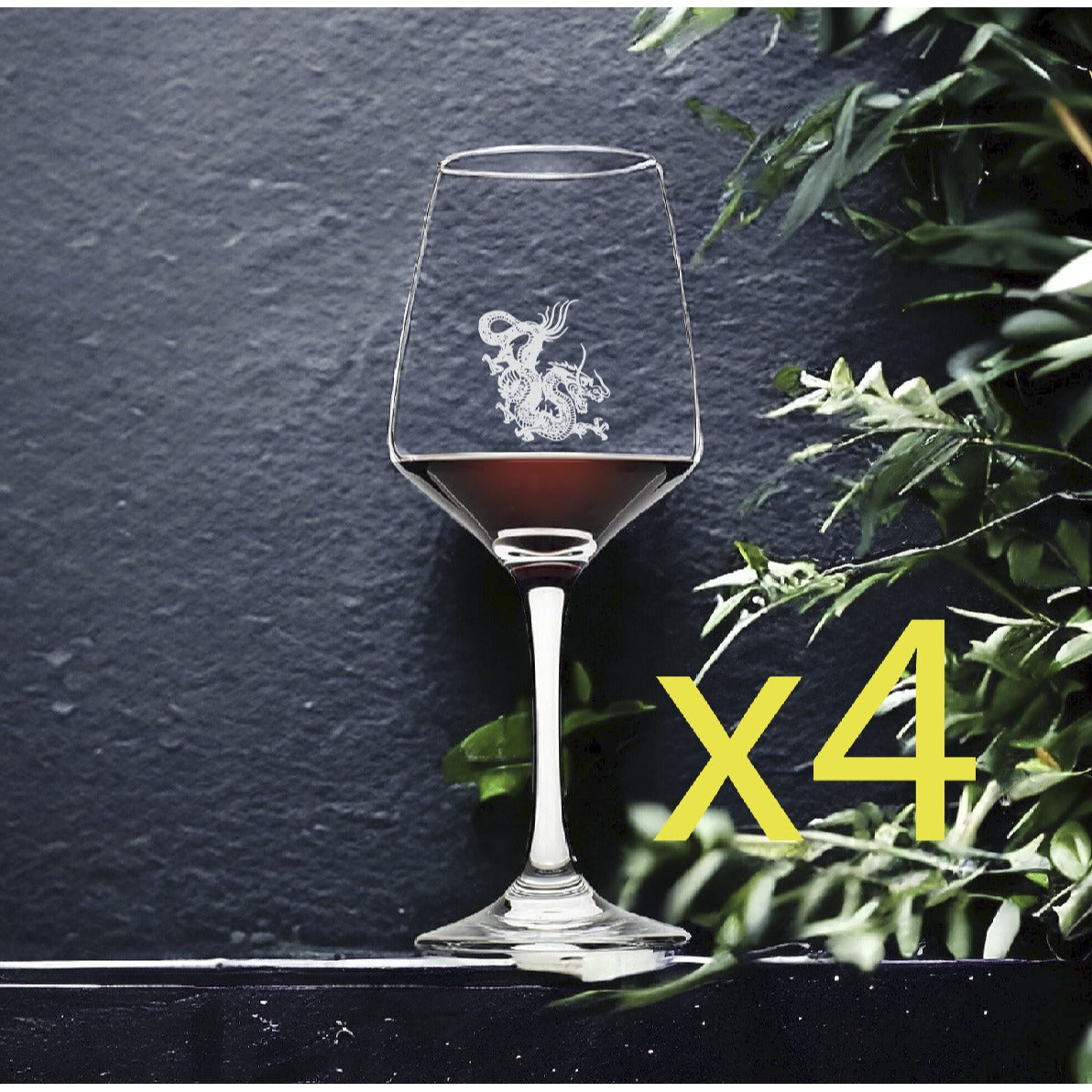 Dragon Wine Glasses x4 Premium 12 Oz Personalize Fantasy Mythology Books NEW