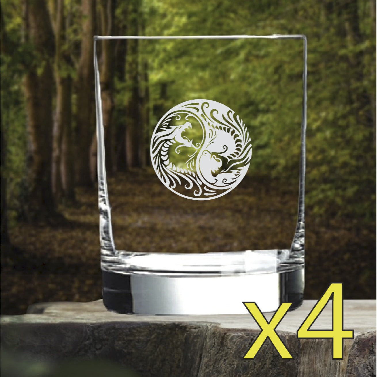 Dragon Yin Yang Whiskey Glasses x4 Double 14 Oz Premium Old Fashioned NEW
