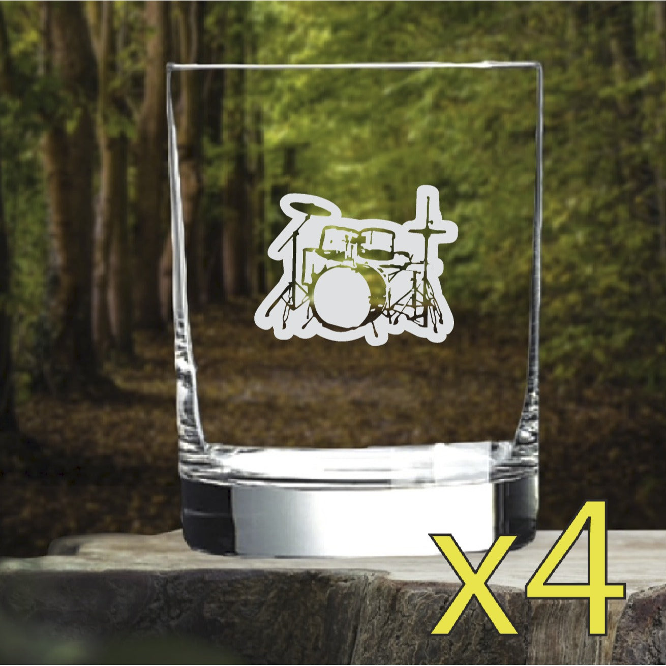 Drum Set Whiskey Glasses x4 Double 14 Oz Premium Old Fashioned Band Music NEW