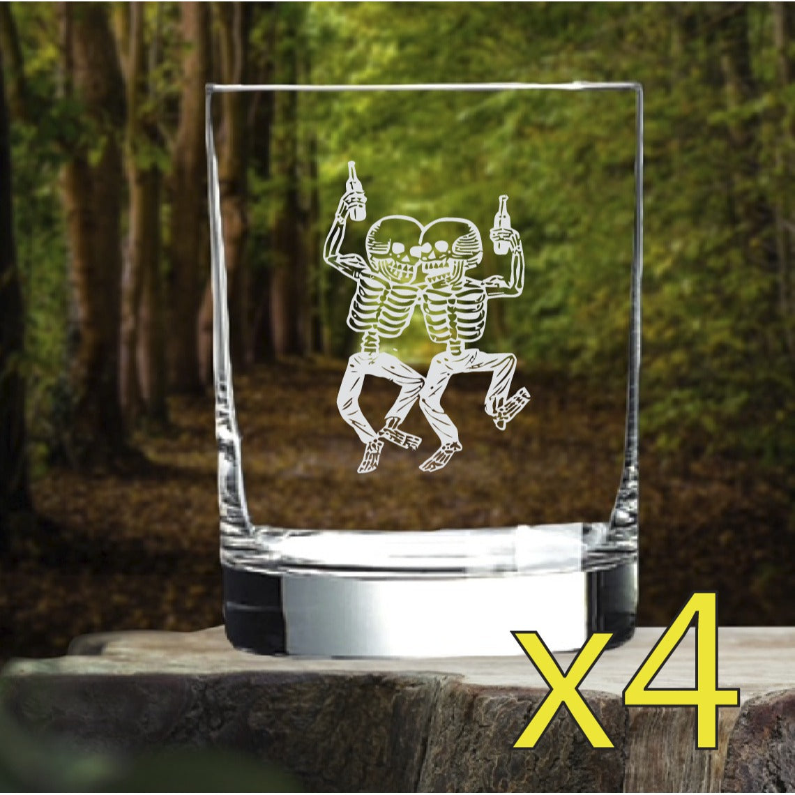 Drunk Skeletons Whiskey Glasses x4 Double 14 Oz Premium Old Fashioned Party NEW
