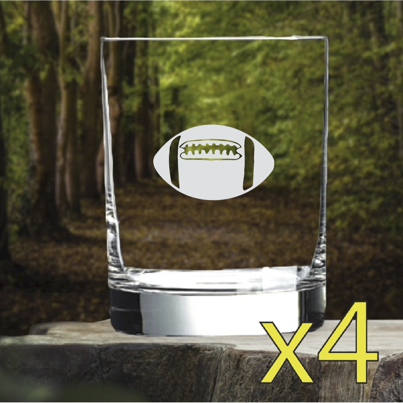 Football Whiskey Glasses x4 Double 14 Oz Premium Old Fashioned Sports NEW