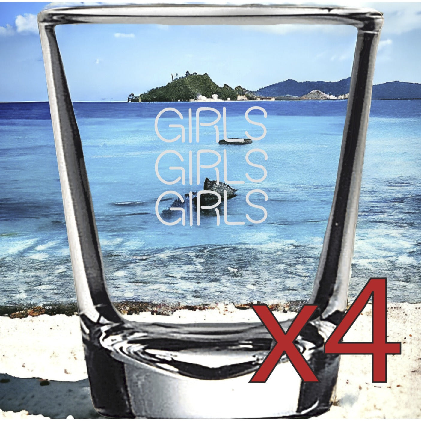 Girls Girls Girls x4 Shot Glasses Spirit Liquor Party 2 Oz Premium Customize NEW