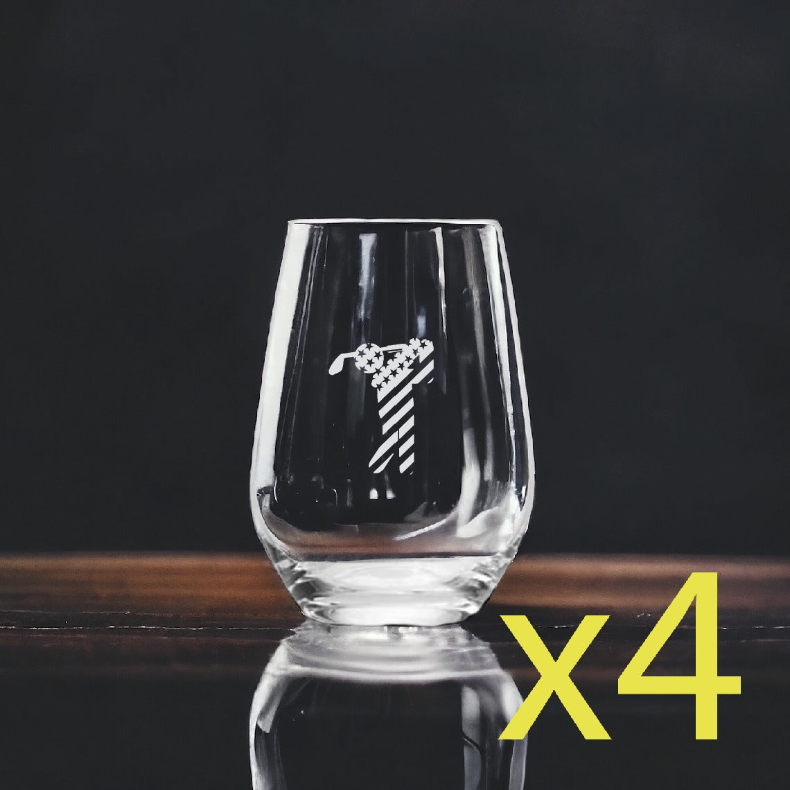 Golf USA Flag Stemless Wine Glasses x4 Premium 15 Oz Personalize Sports NEW