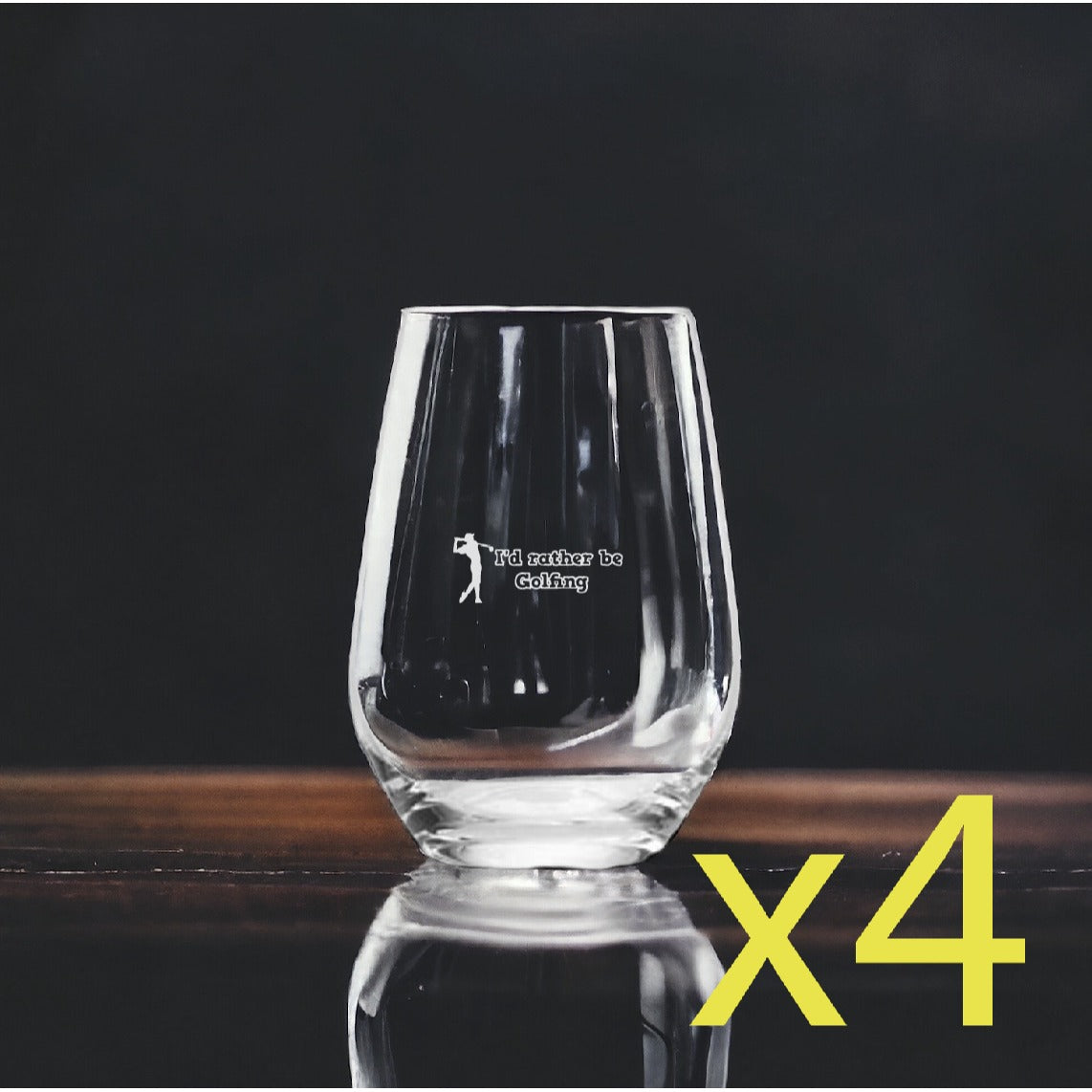 Golfing Stemless Wine Glasses x4 Premium 15 Oz Personalize Sports Funny NEW