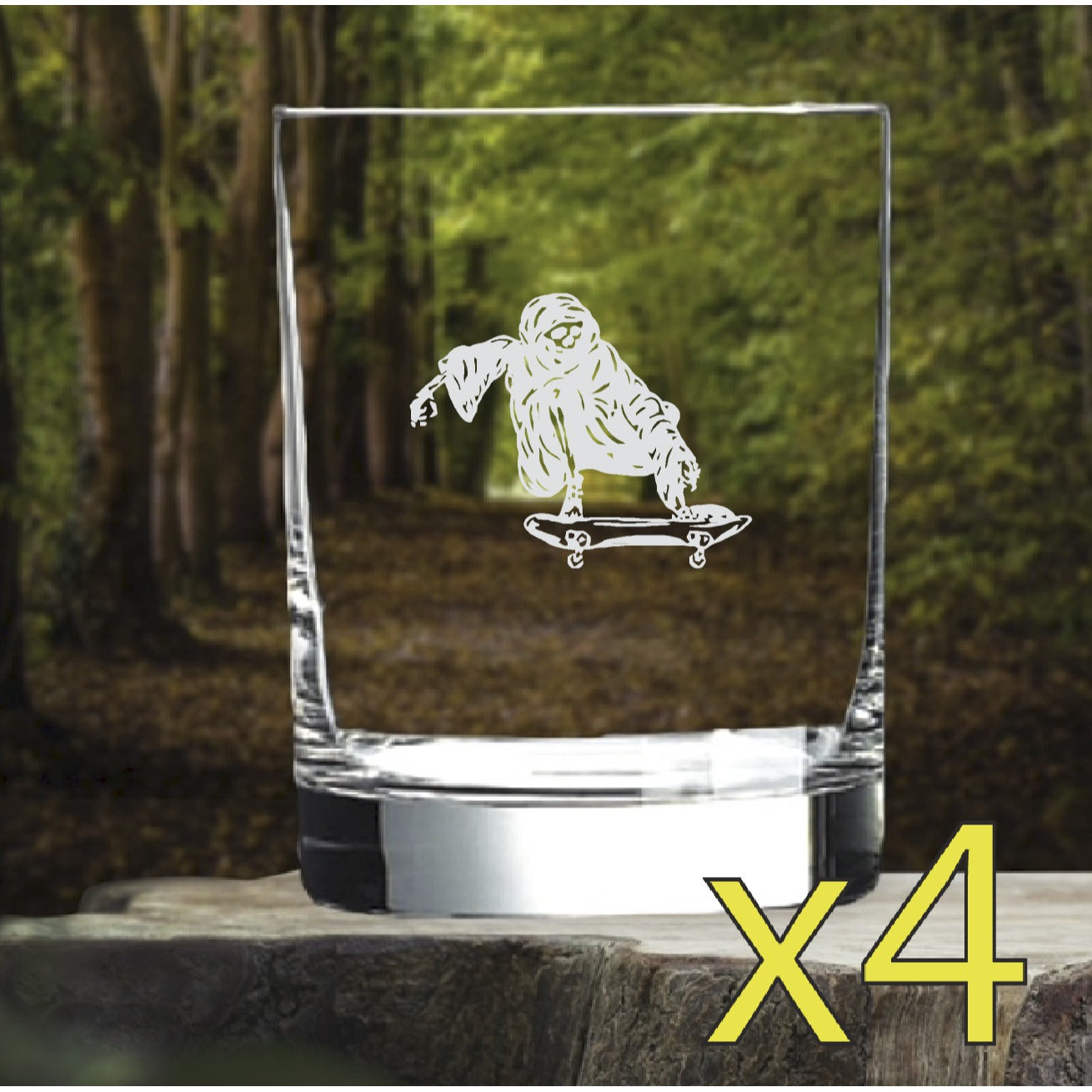 Grim Reaper Skater Whiskey Glasses x4 Double 14 Oz Premium Old Fashioned NEW