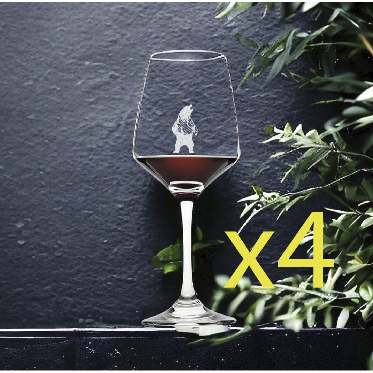 Grizzly Mountain Wine Glasses x4 Premium 12 Oz Personalize Nature Animal NEW