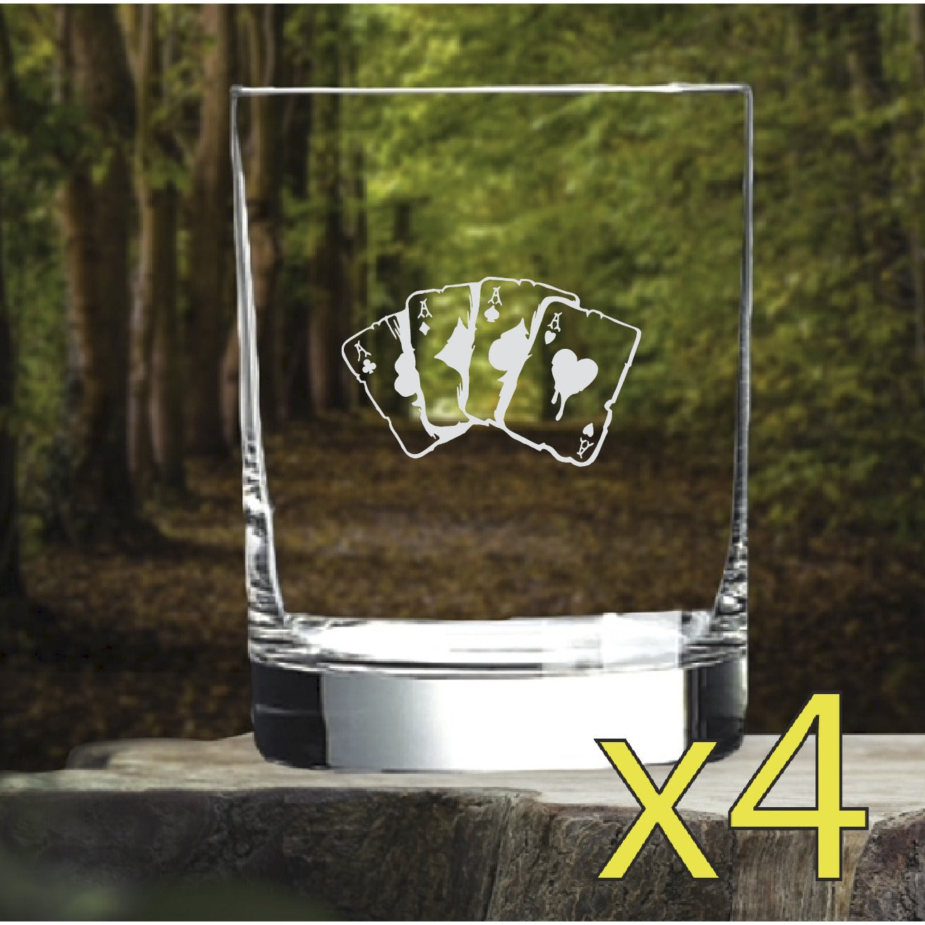 Hand of Aces Whiskey Glasses x4 Double 14 Oz Premium Old Fashioned Cards NEW
