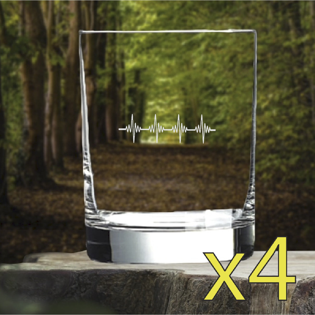 Heartbeat Whiskey Glasses x4 Double 14 Oz Premium Old Fashioned Life Medical NEW
