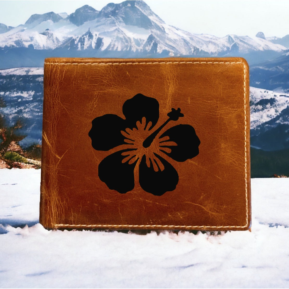 Hibiscus Flower Leather Wallet Bifold Premium Quality Buffalo Floral Nature NEW