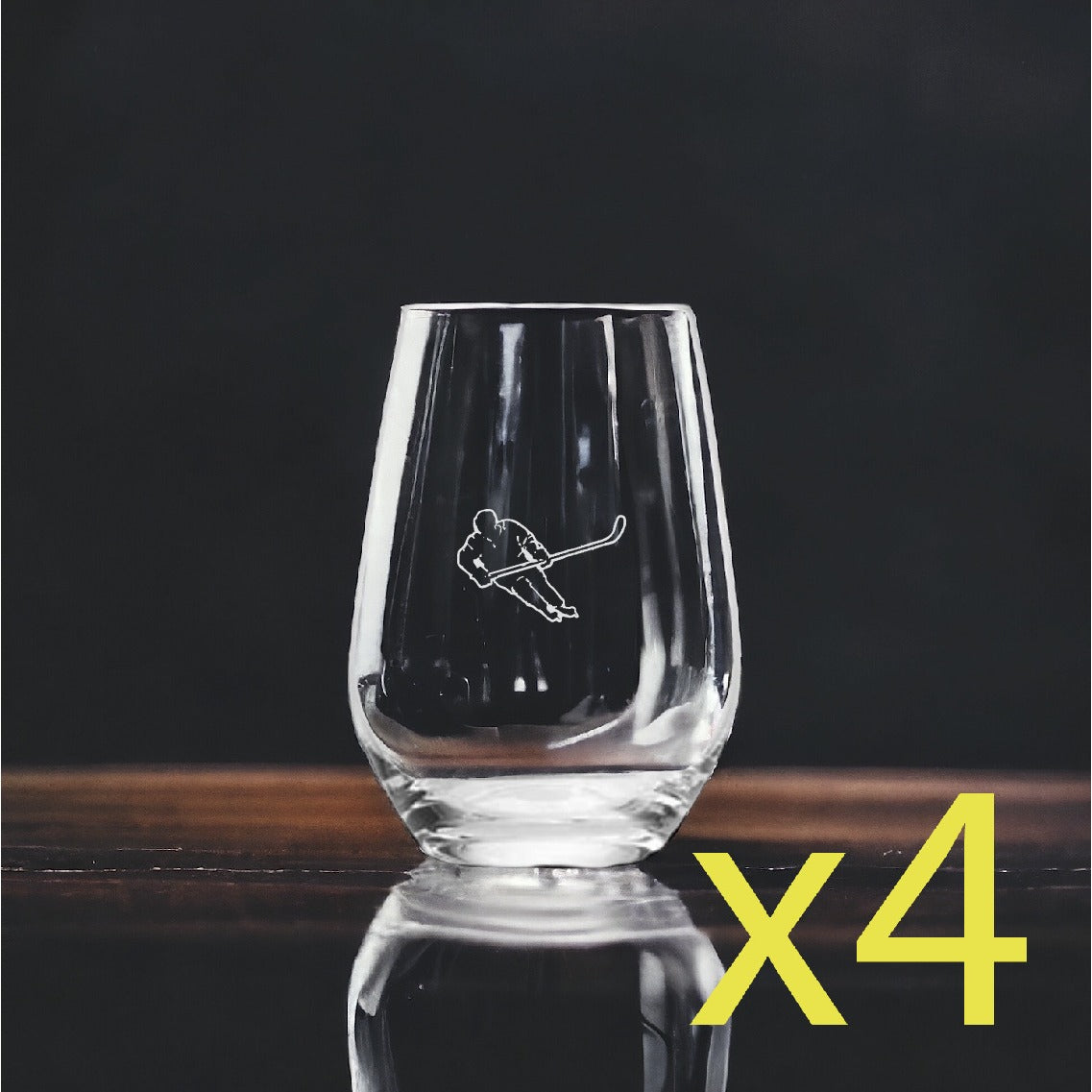 Hockey Player Stemless Wine Glasses x4 Premium 15 Oz Personalize Sports Ice NEW