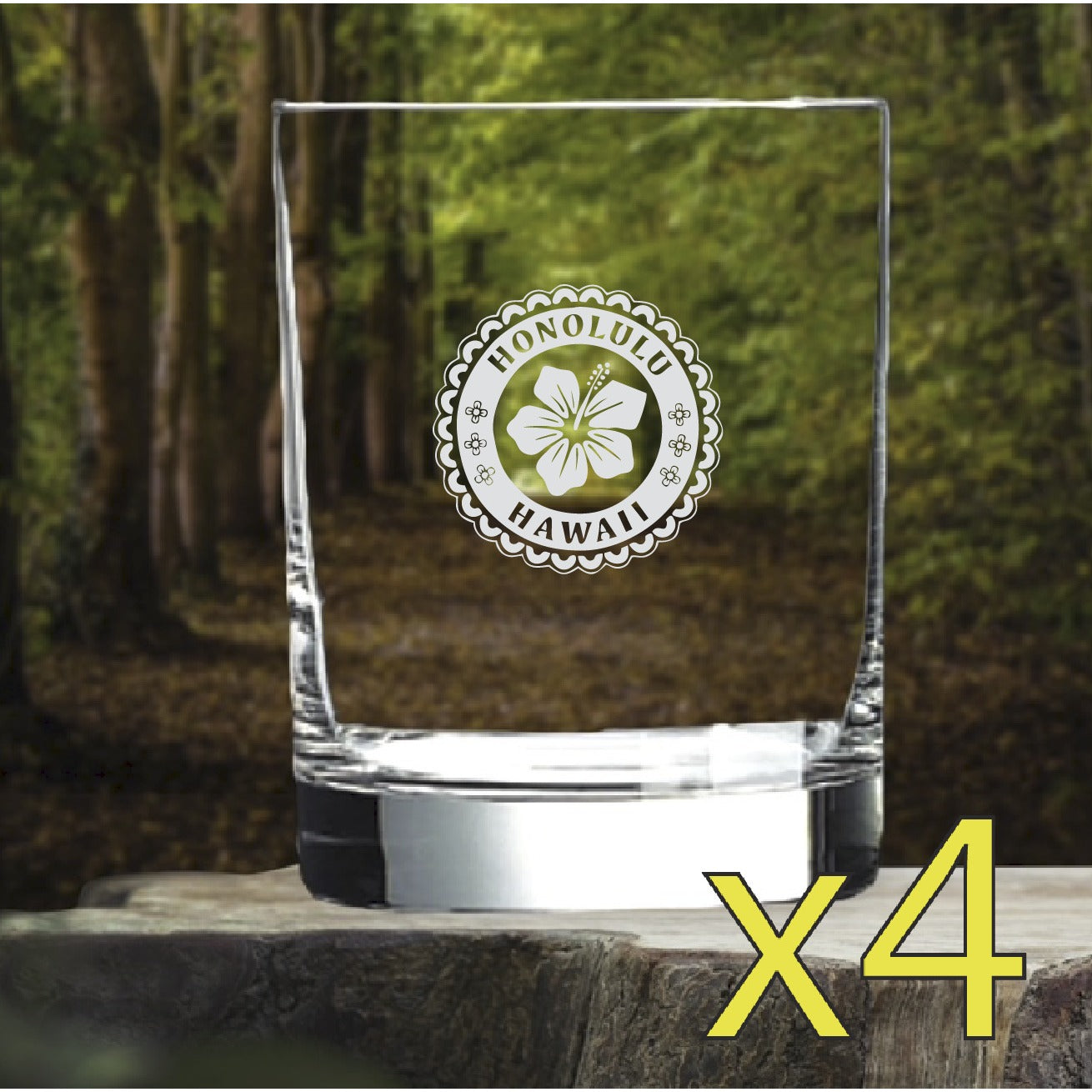 Honolulu Hawaii Whiskey Glasses x4 Double 14 Oz Premium Old Fashioned Beach NEW