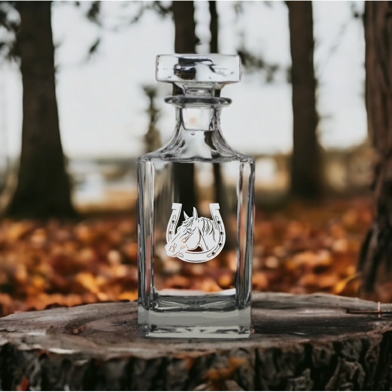 Horseshoe Horse Decanter 26 Oz Bourbon Whiskey Premium Glass Personalize NEW