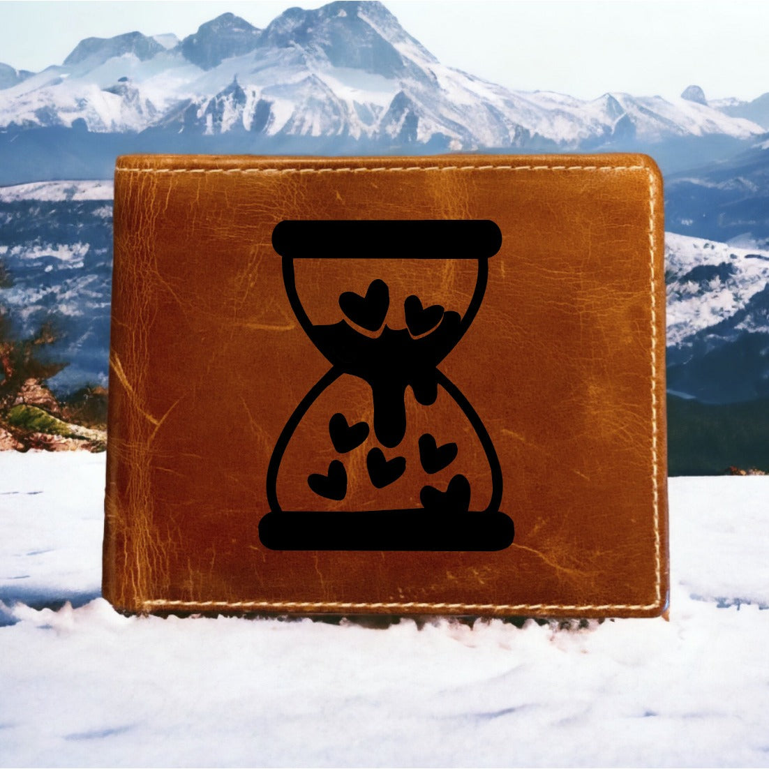 Hourglass Hearts Leather Wallet Bifold Premium Quality Buffalo Love Gift NEW