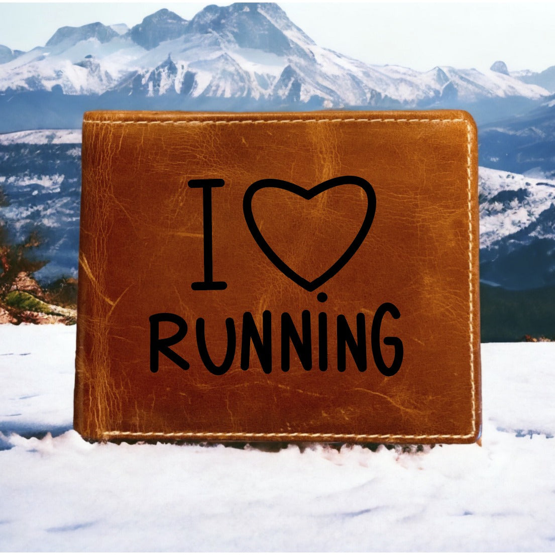 I Heart Running Leather Wallet Bifold Premium Quality Buffalo Outdoor Gym NEW