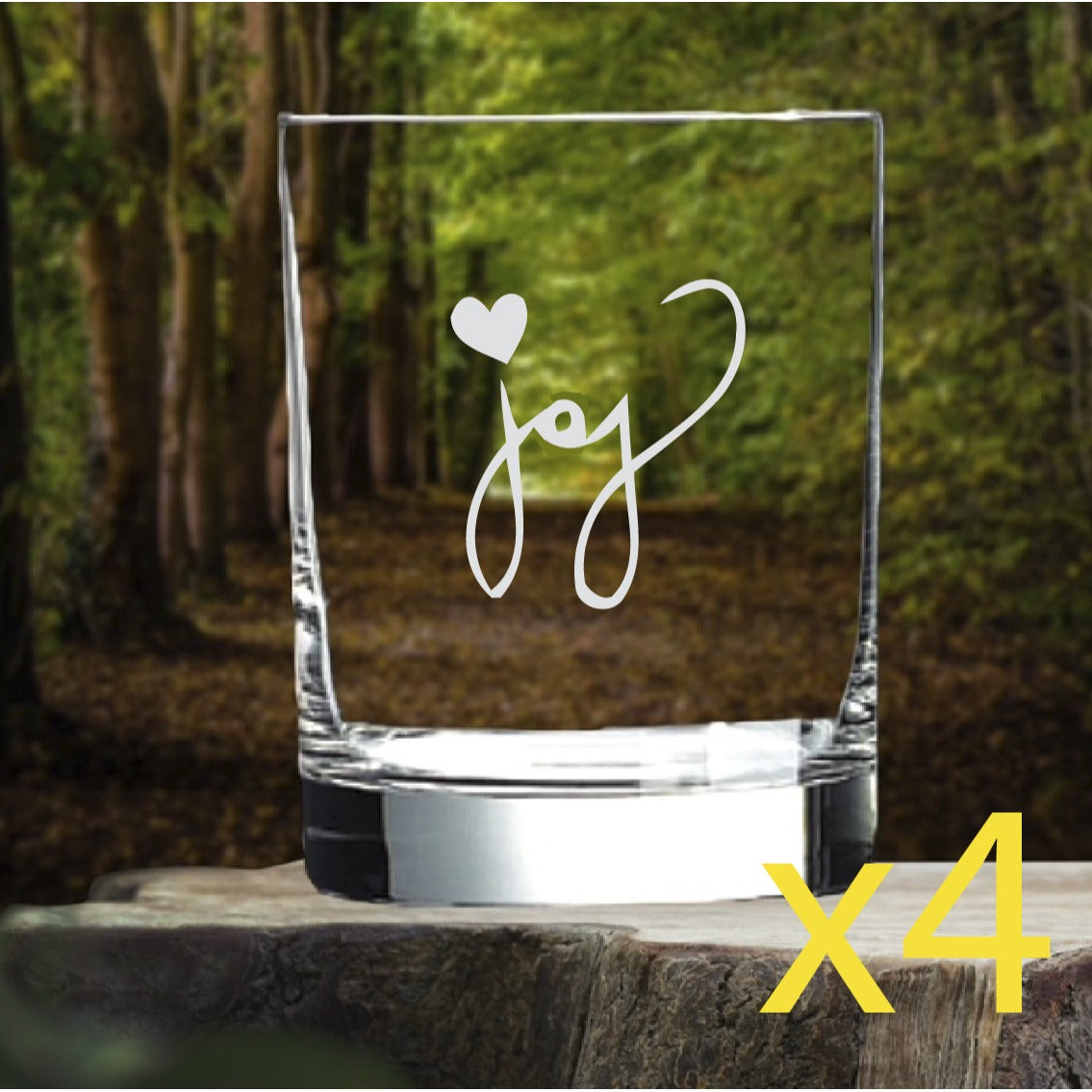 Joy Heart Whiskey Glasses x4 Double 14 Oz Premium Old Fashioned Happy NEW