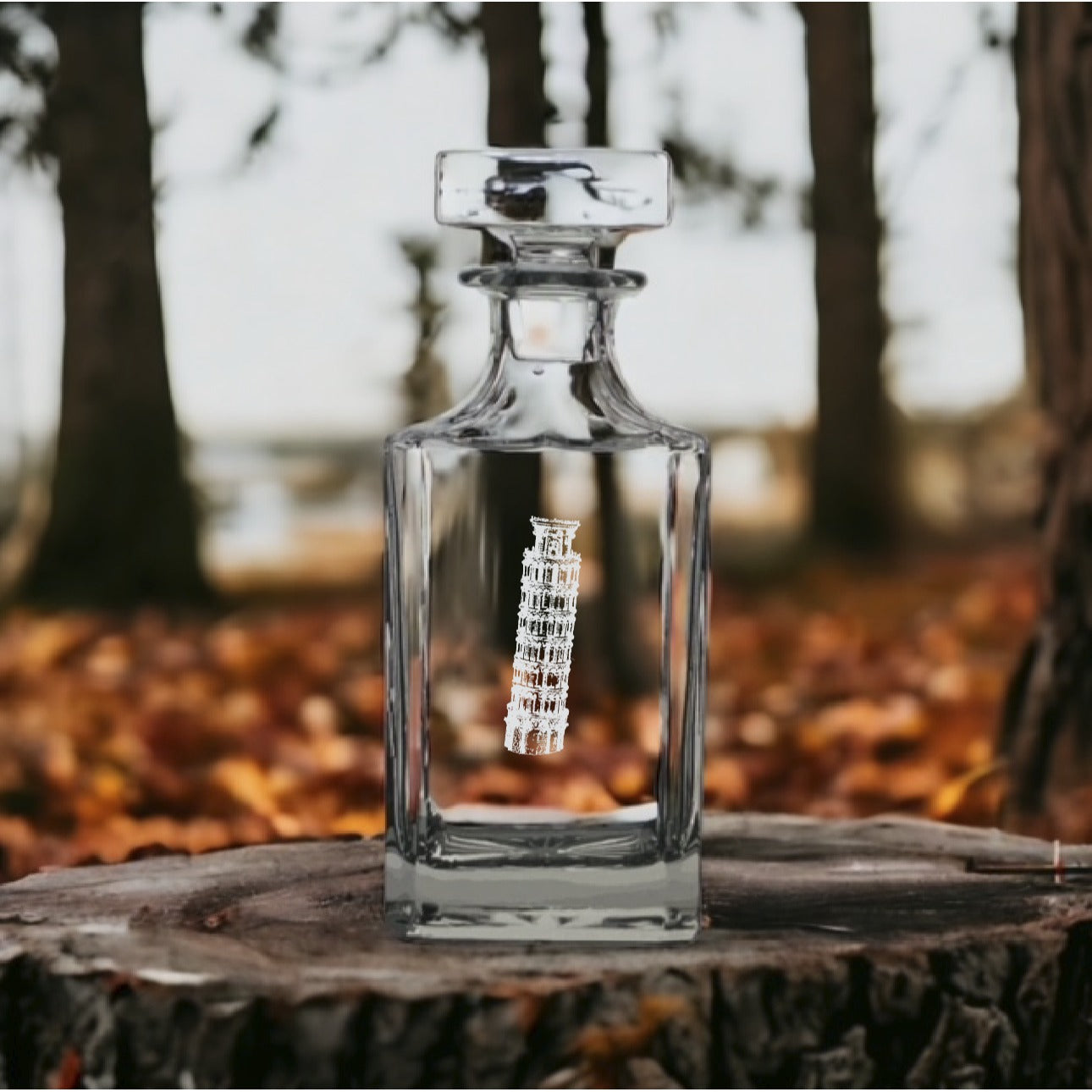 Leaning Tower Decanter 26 Oz Bourbon Whiskey Premium Glass Personalize Italy NEW