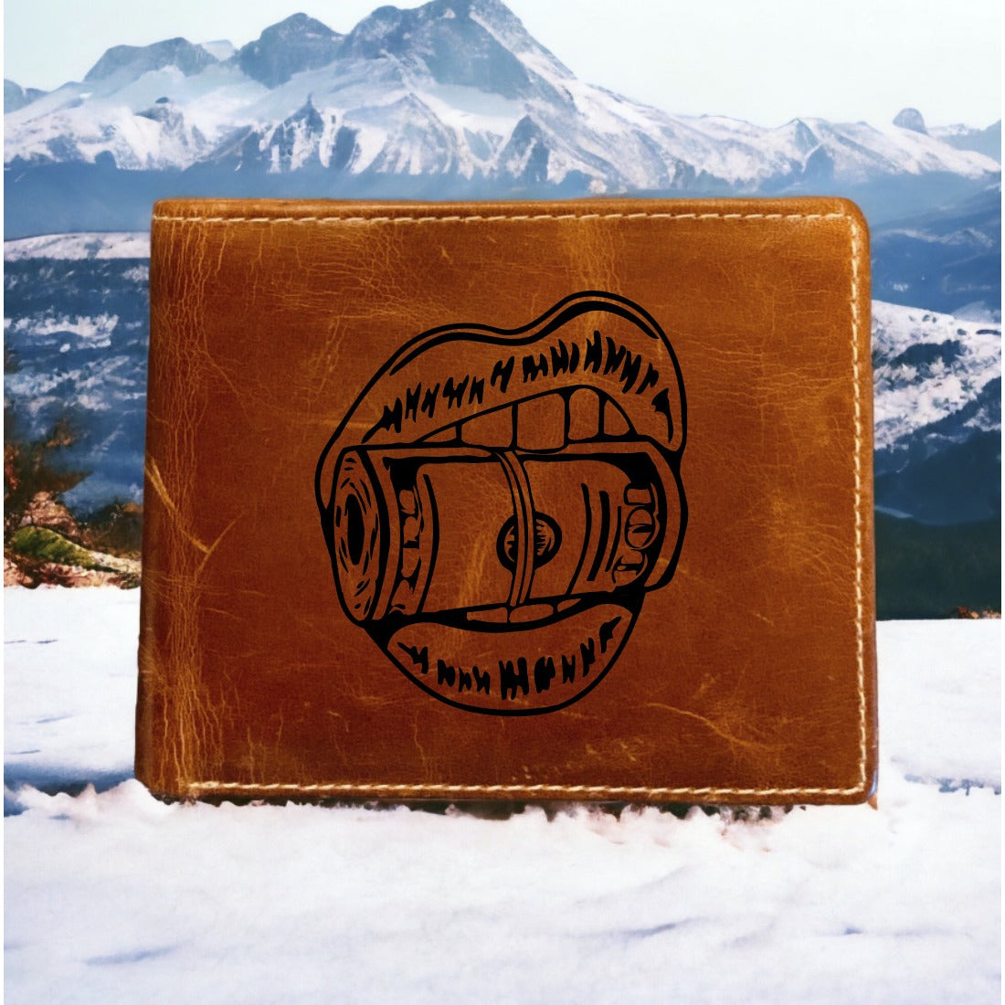 Lips Cash Leather Wallet Bifold Premium Quality Buffalo Money Bank Gift NEW