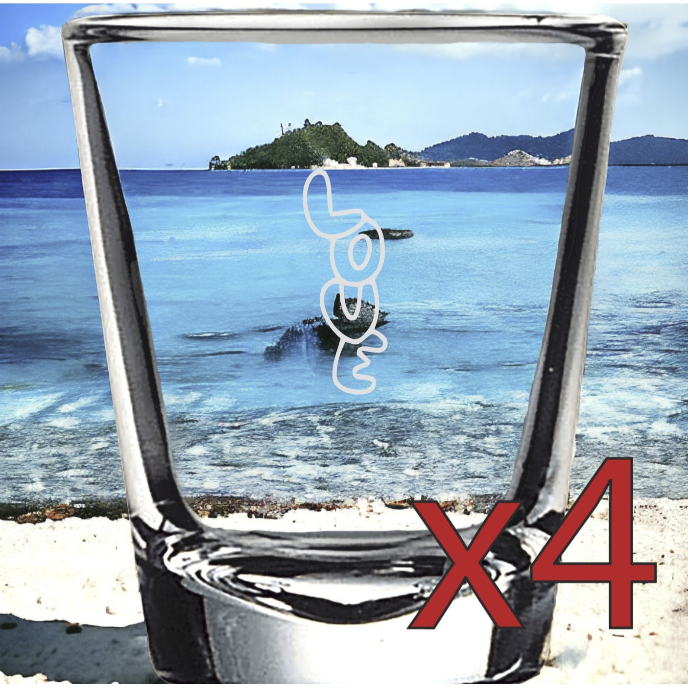 Love x4 Shot Glasses Spirit Liquor Party 2 Oz Premium Customize Heart Quote NEW