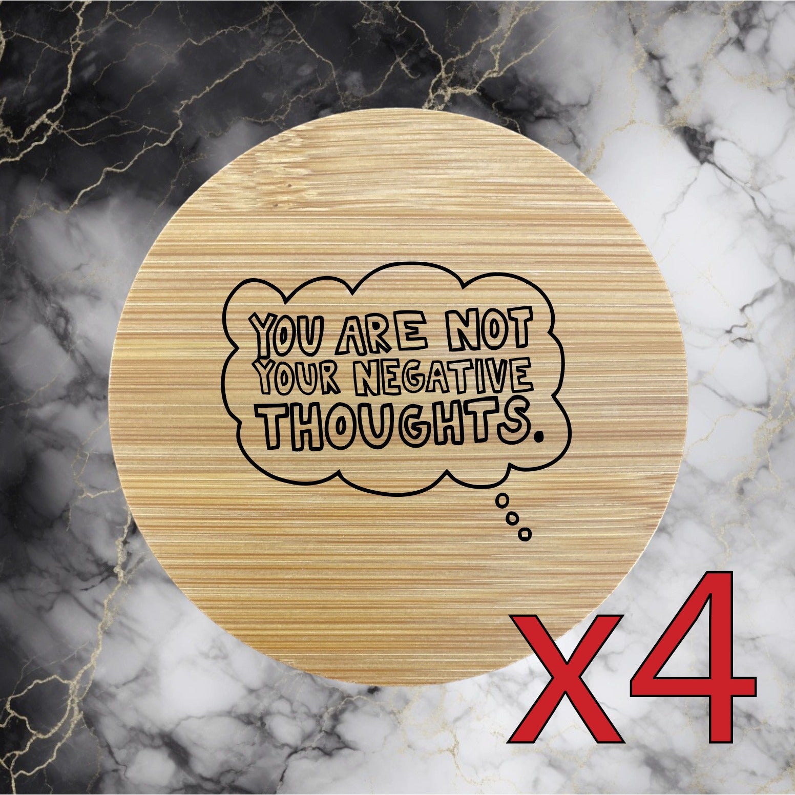 Negative Thoughts x4 Bamboo Coasters Drink Natural Wood Home Decor Lounge NEW