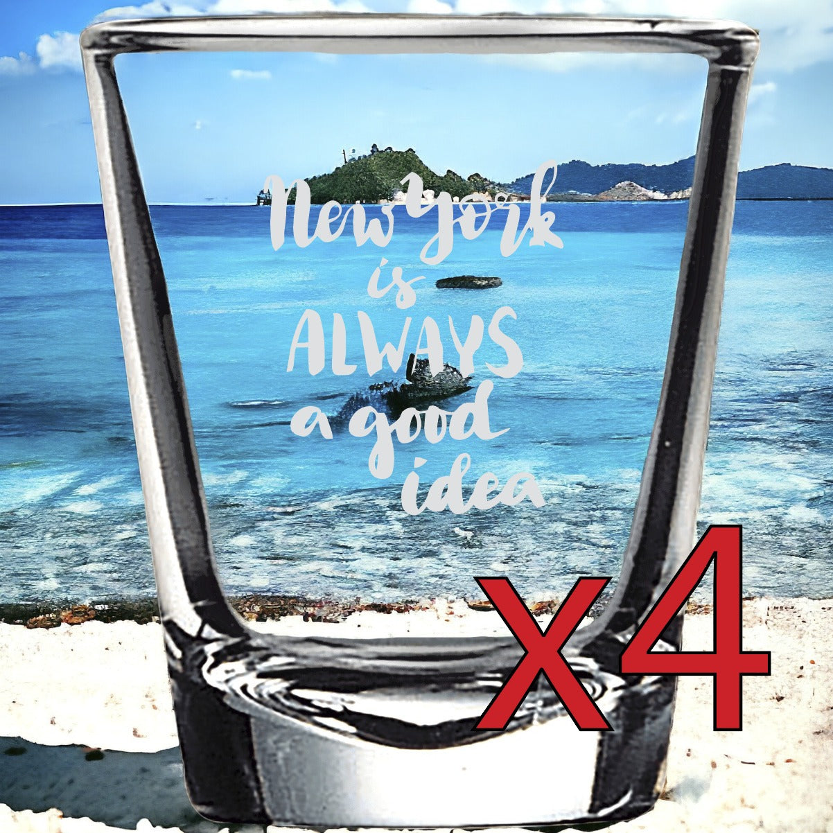 New York x4 Shot Glasses Spirit Liquor Party 2 Oz Premium Customize Quote NEW
