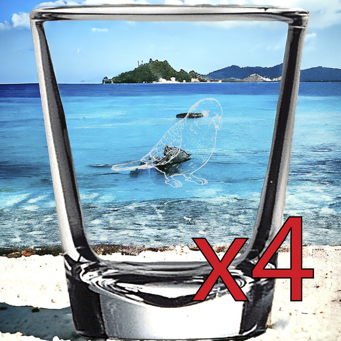 Parakeet x4 Shot Glasses Spirit Liquor Party 2 Oz Premium Customize Bird NEW
