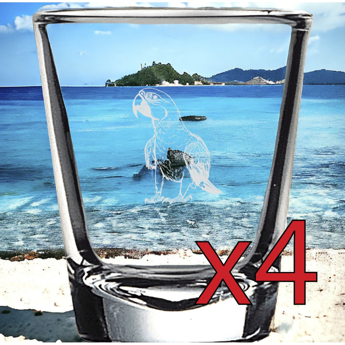 Parrot x4 Shot Glasses Spirit Liquor Party 2 Oz Premium Customize Animal NEW