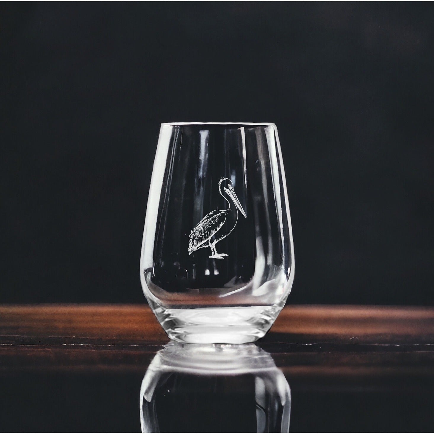 Pelican Stemless Wine Glasses x4 Premium 15 Oz Personalize Gift Bird Ocean NEW