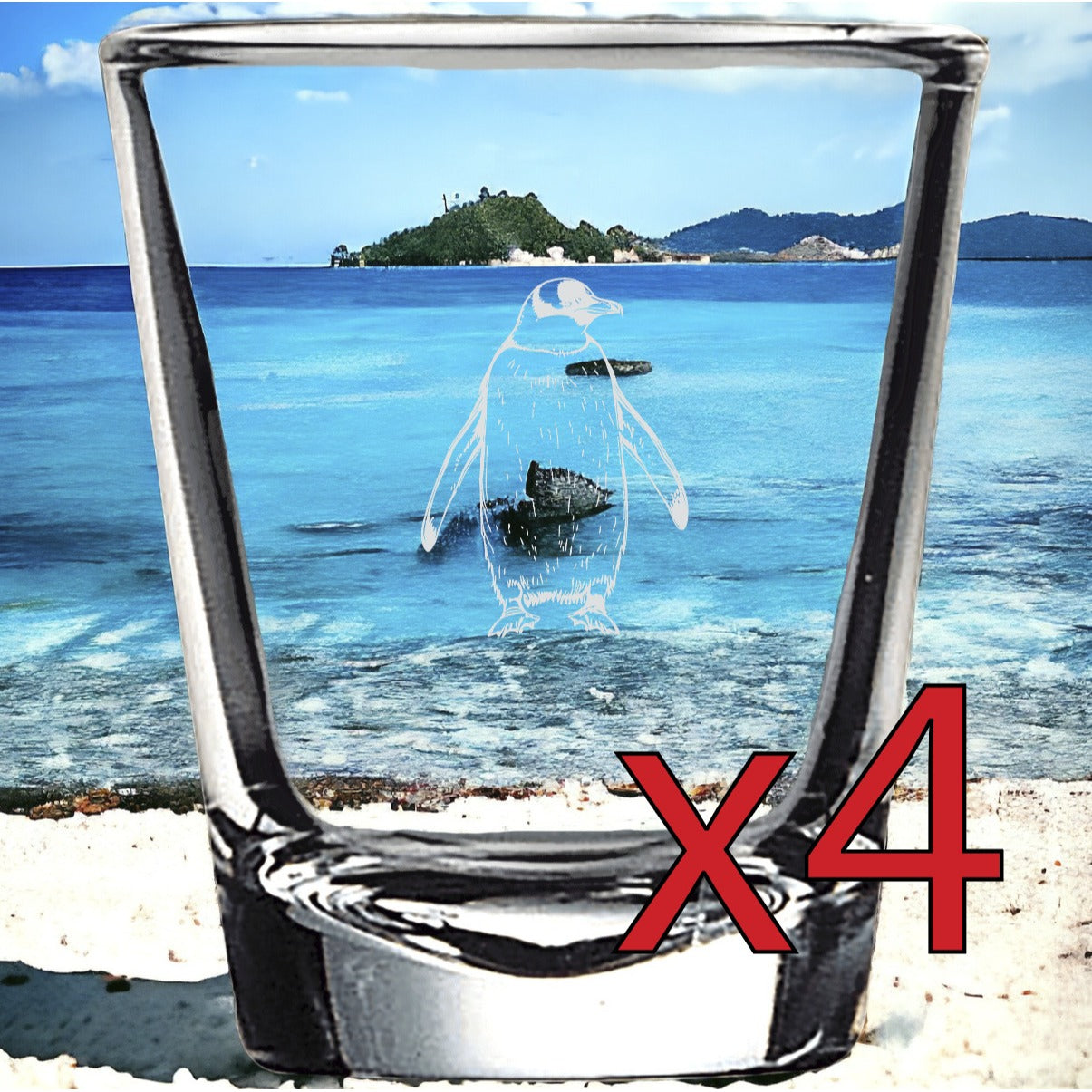 Penguin x4 Shot Glasses Spirit Liquor Party 2 Oz Premium Customize Animal NEW