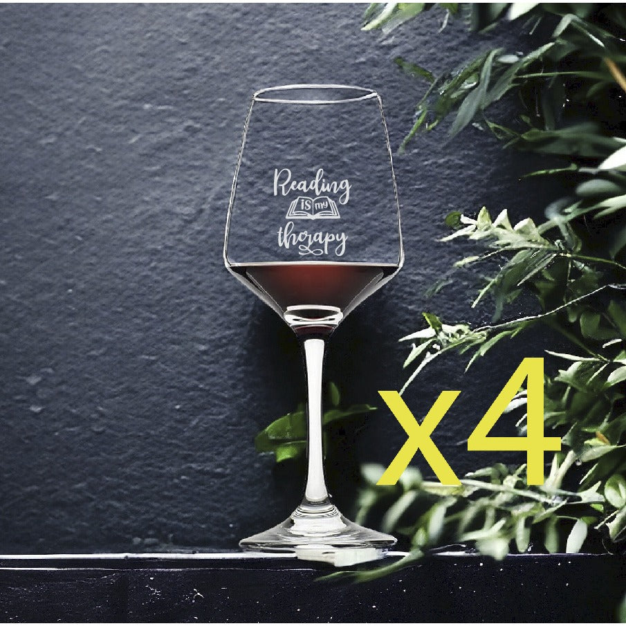 Reading Therapy Wine Glasses x4 Premium 12 Oz Personalize Books Pages Novel NEW