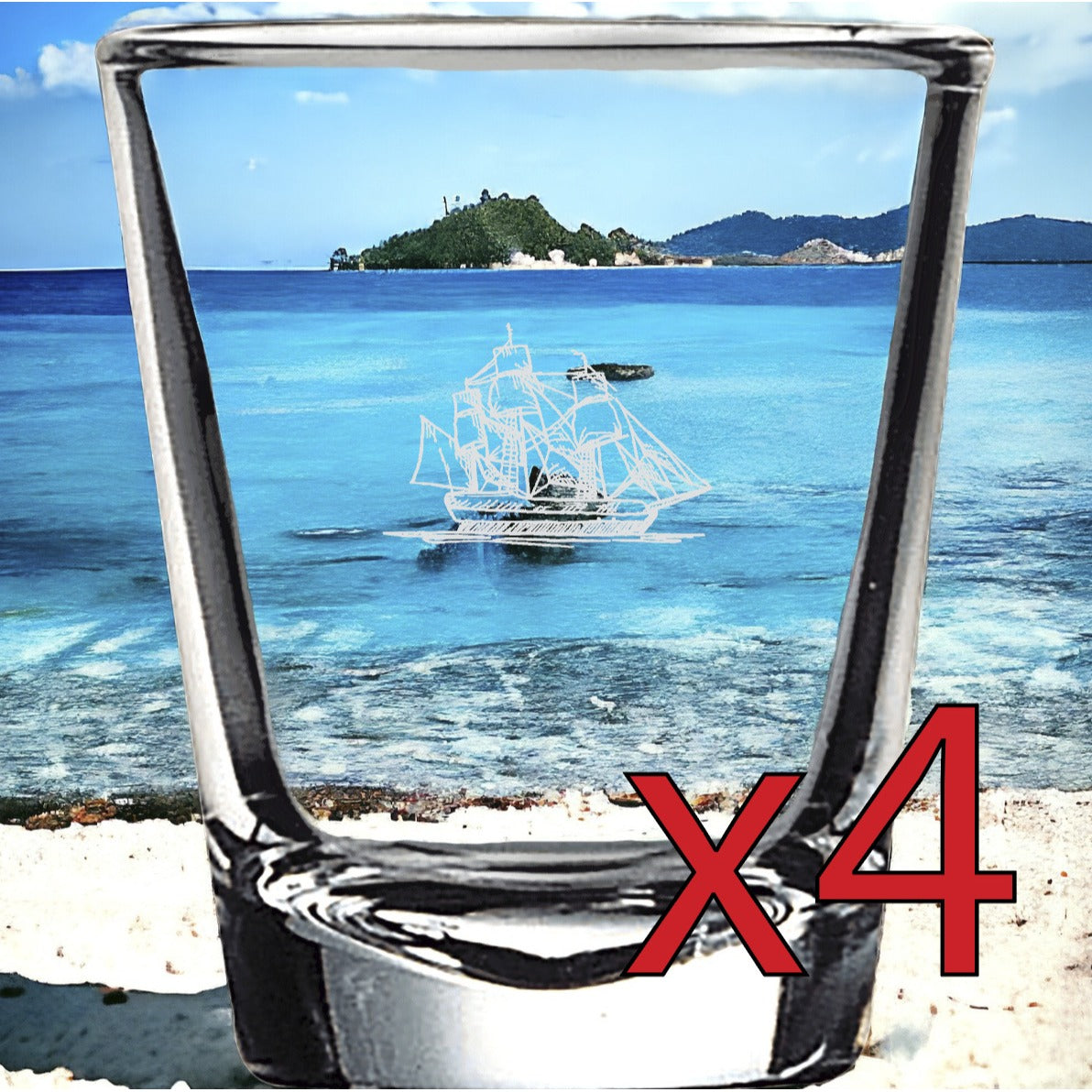 Ship Sailing x4 Shot Glasses Spirit Liquor Party 2 Oz Premium Customize NEW