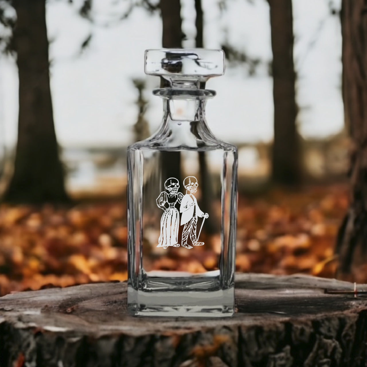 Skeleton Couple Decanter 26 Oz Bourbon Whiskey Premium Glass Personalize NEW