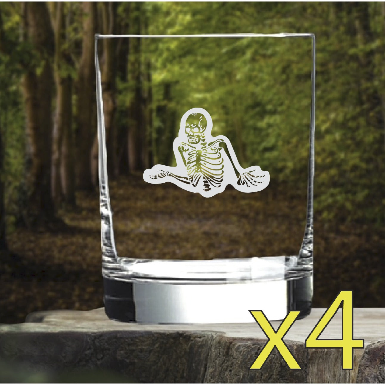 Skeleton Whiskey Glasses x4 Double 14 Oz Premium Old Fashioned Shrug Funny NEW