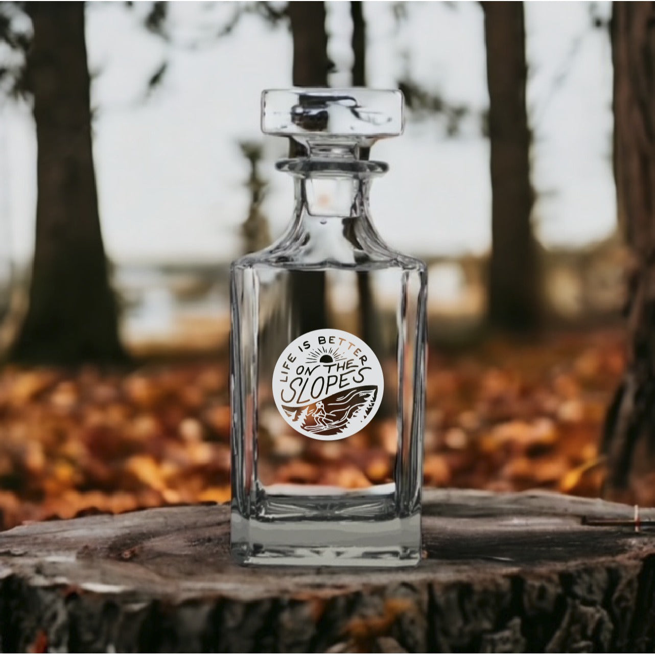 Ski Slopes Decanter 26 Oz Bourbon Whiskey Premium Glass Personalize Winter NEW