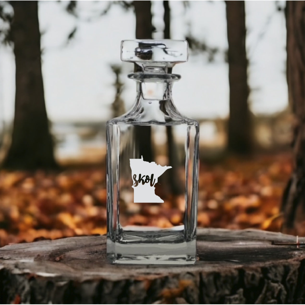 Skol Minnesota Decanter 26 Oz Bourbon Whiskey Premium Glass Personalize NEW