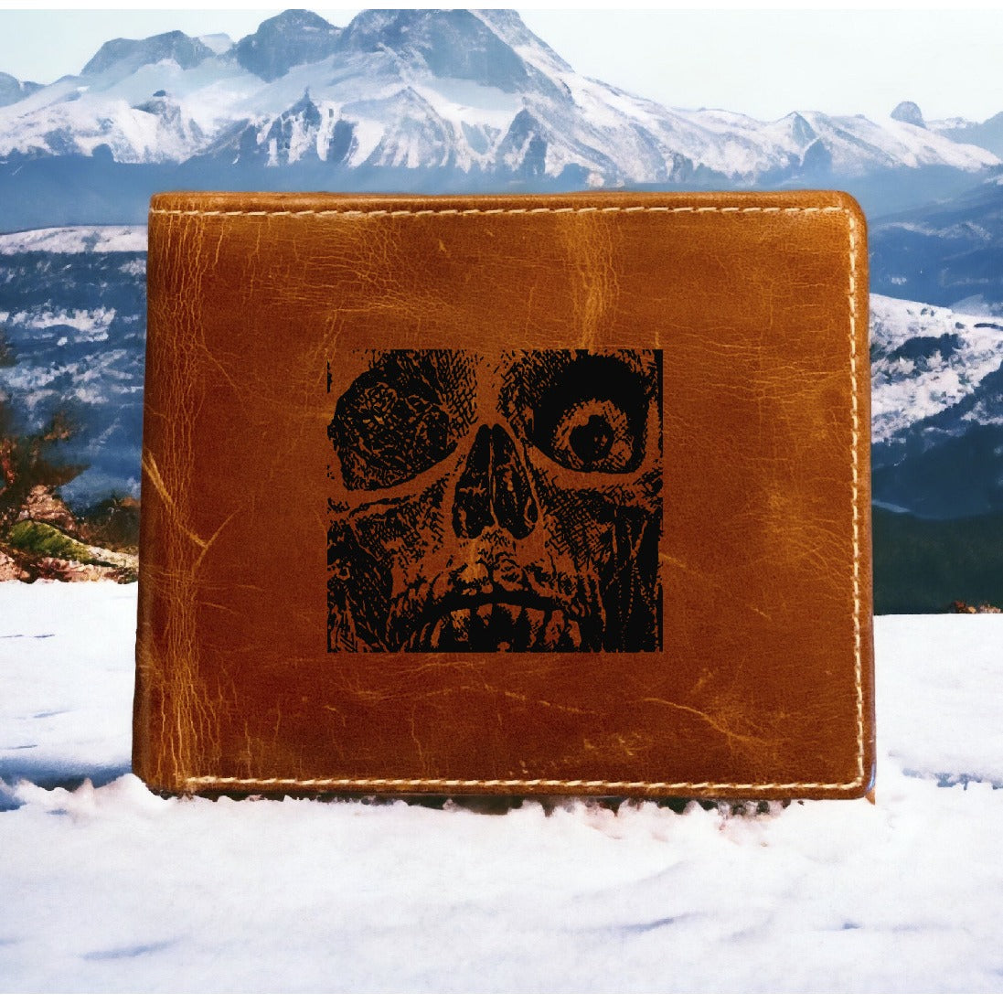 Skull Closeup Leather Wallet Bifold Premium Quality Buffalo Horror Scary NEW