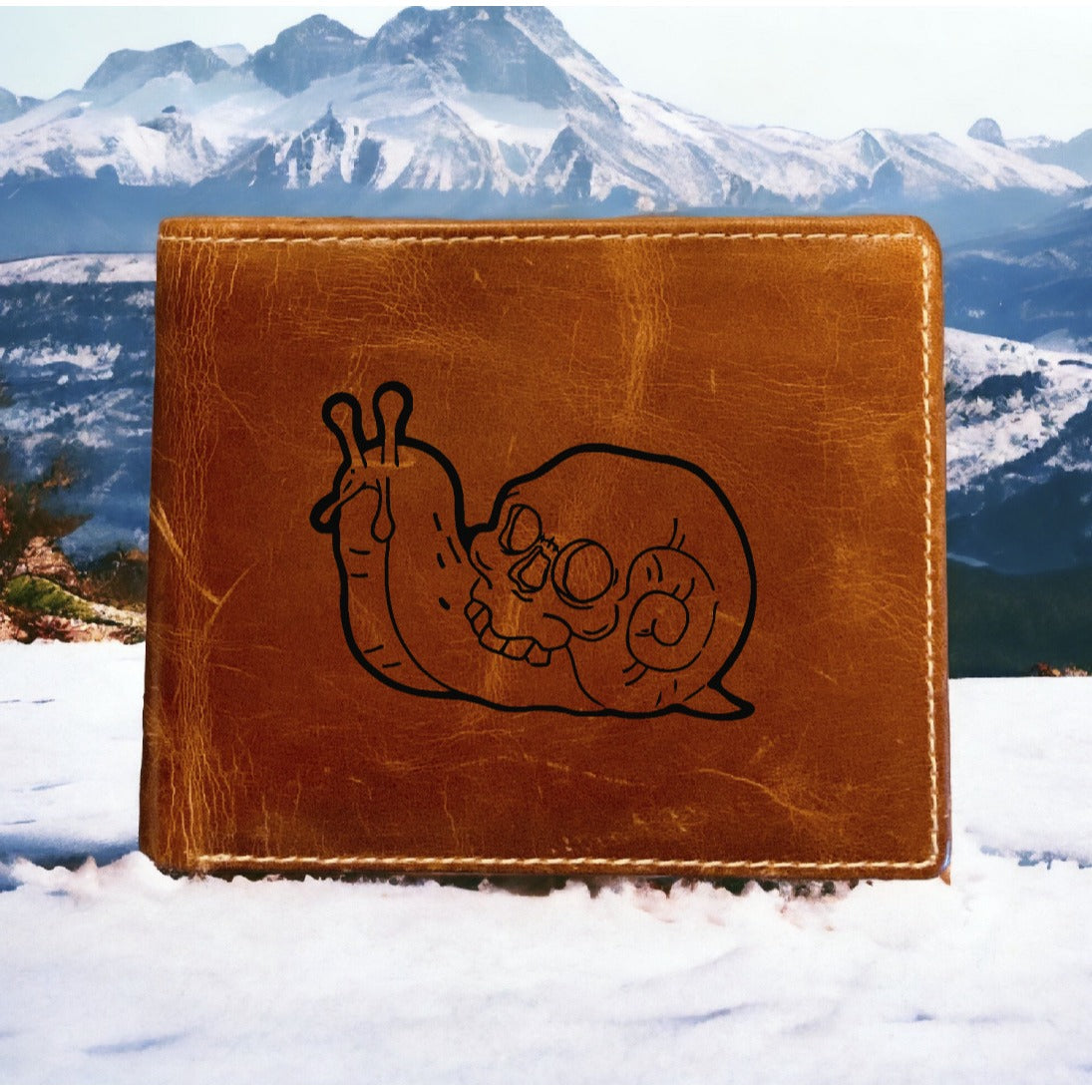 Snail Skull Leather Wallet Bifold Premium Quality Buffalo Horror Bones NEW